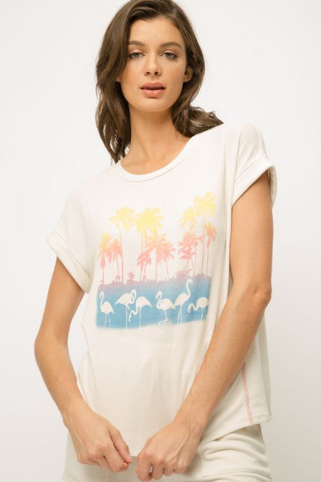 Graphic Tee Flamingos & Palm Trees