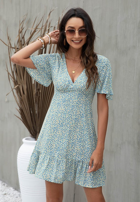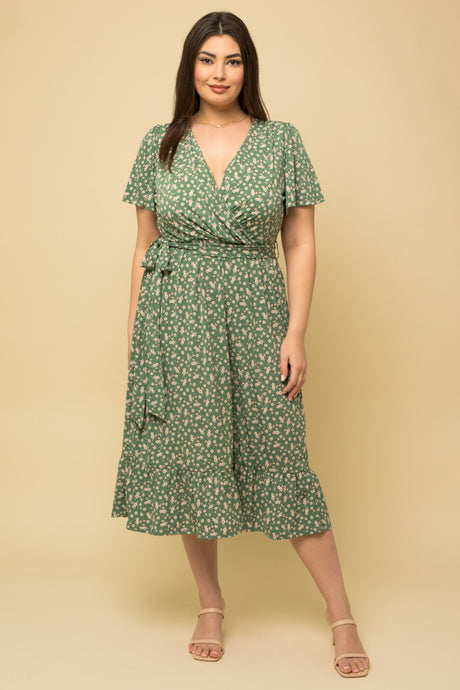 Short Sleeve Faux Wrap Dress